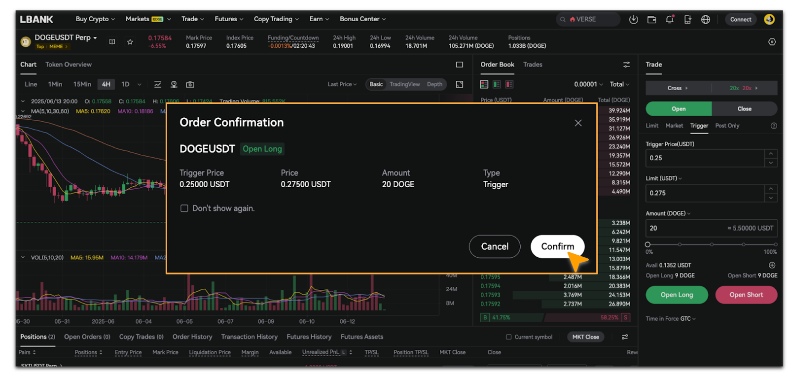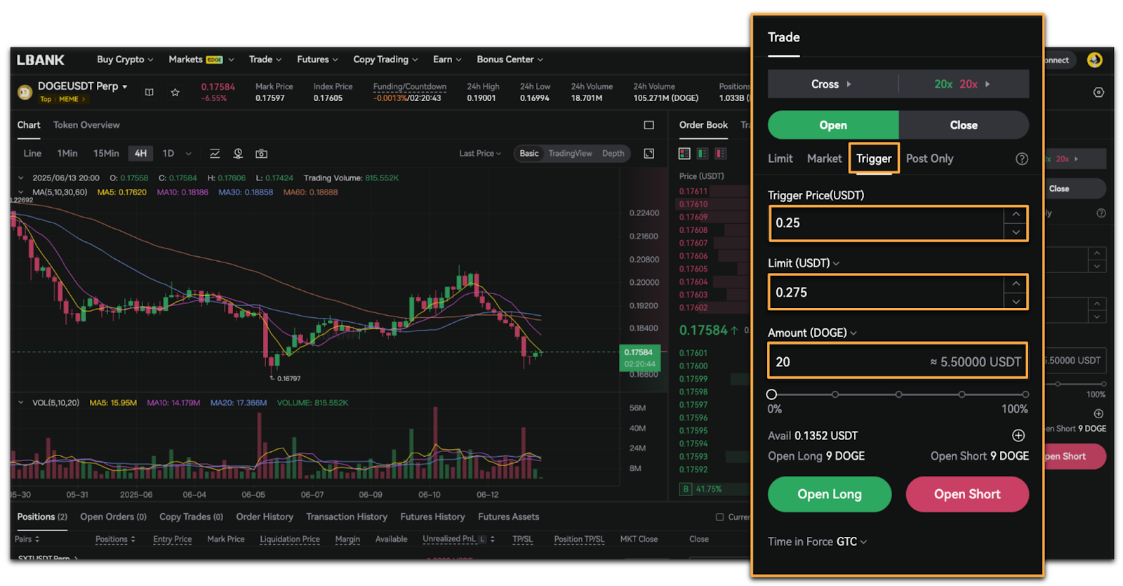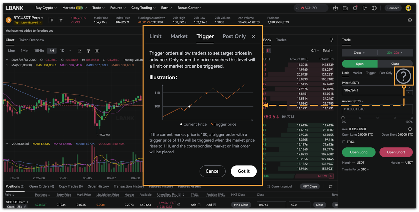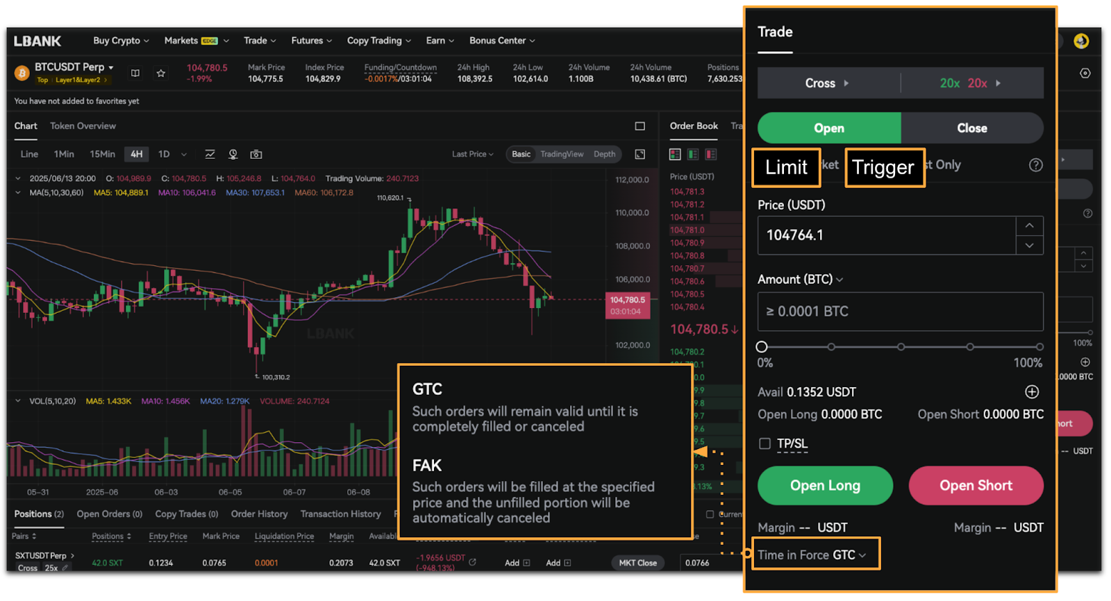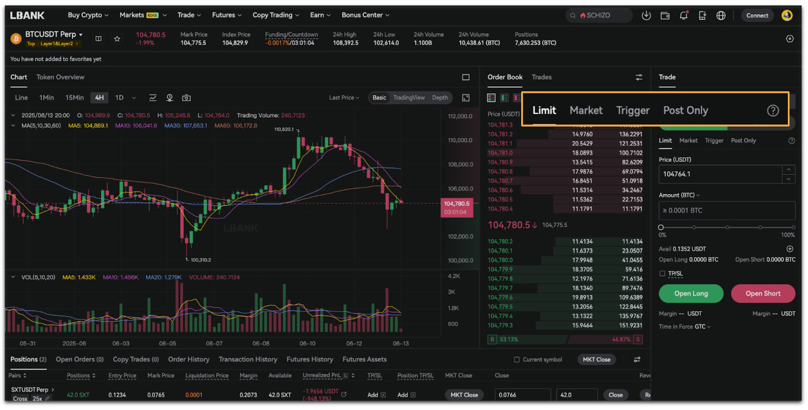 LBank Futures offers four order types: Market Order, Limit Order, Trigger Order, and Post Only.