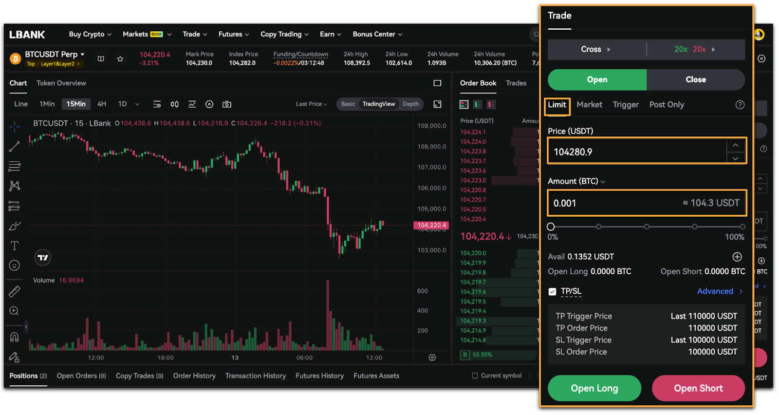 1. Select [Limit], enter the [Price] and [Amount], then tap [Open Long] or [Open Short].