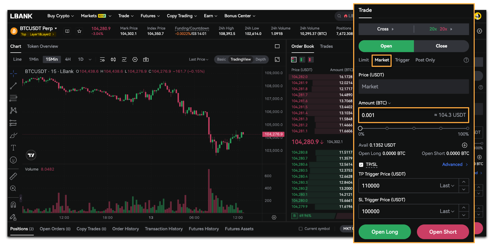 1. Select [Market], enter the [Amount], and tap [Open Long] or [Open Short].