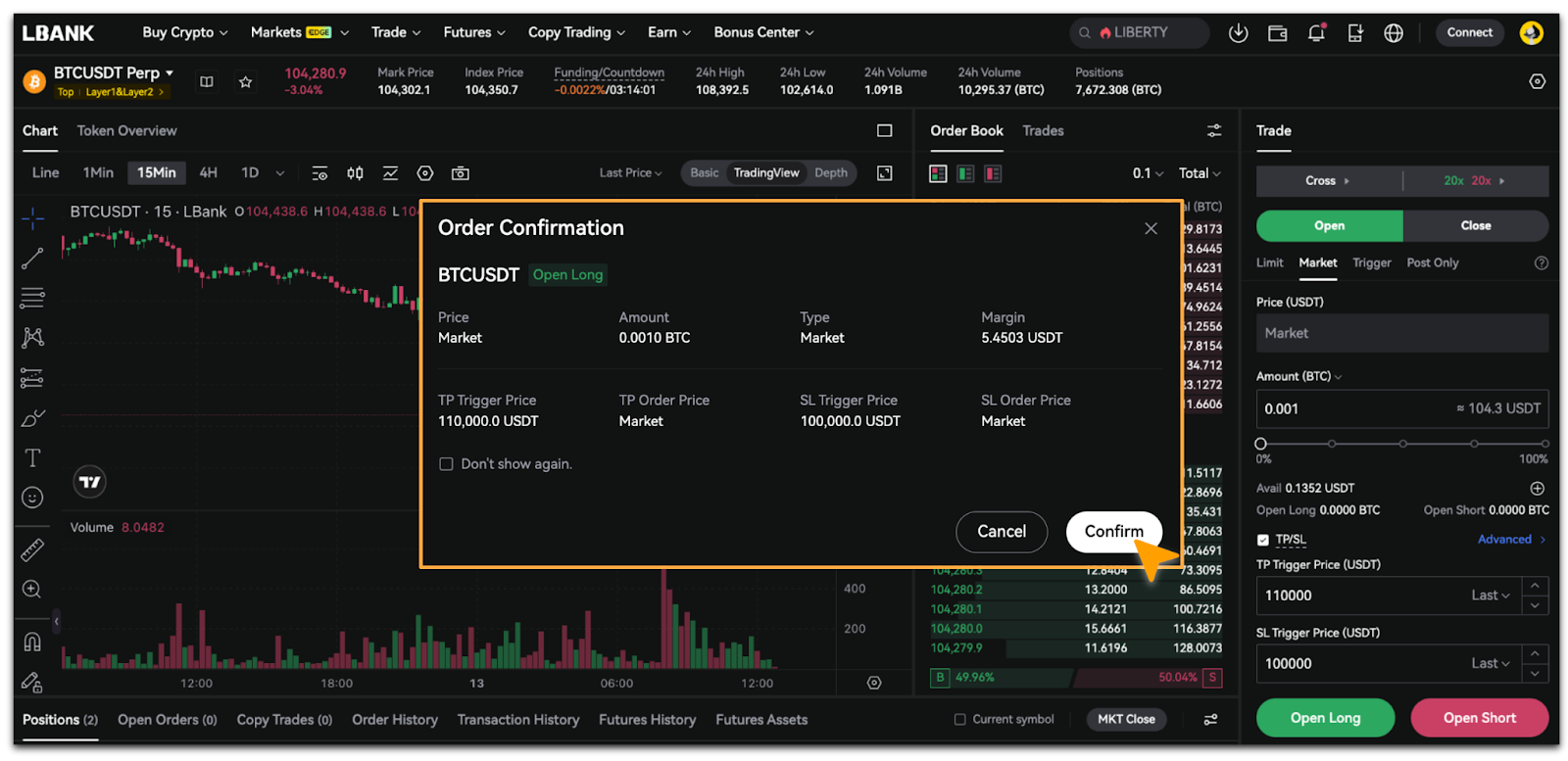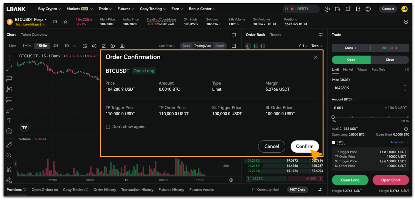 2. In the [Order Confirmation] pop-up, verify that the price and amount information are correct, then tap [Confirm].