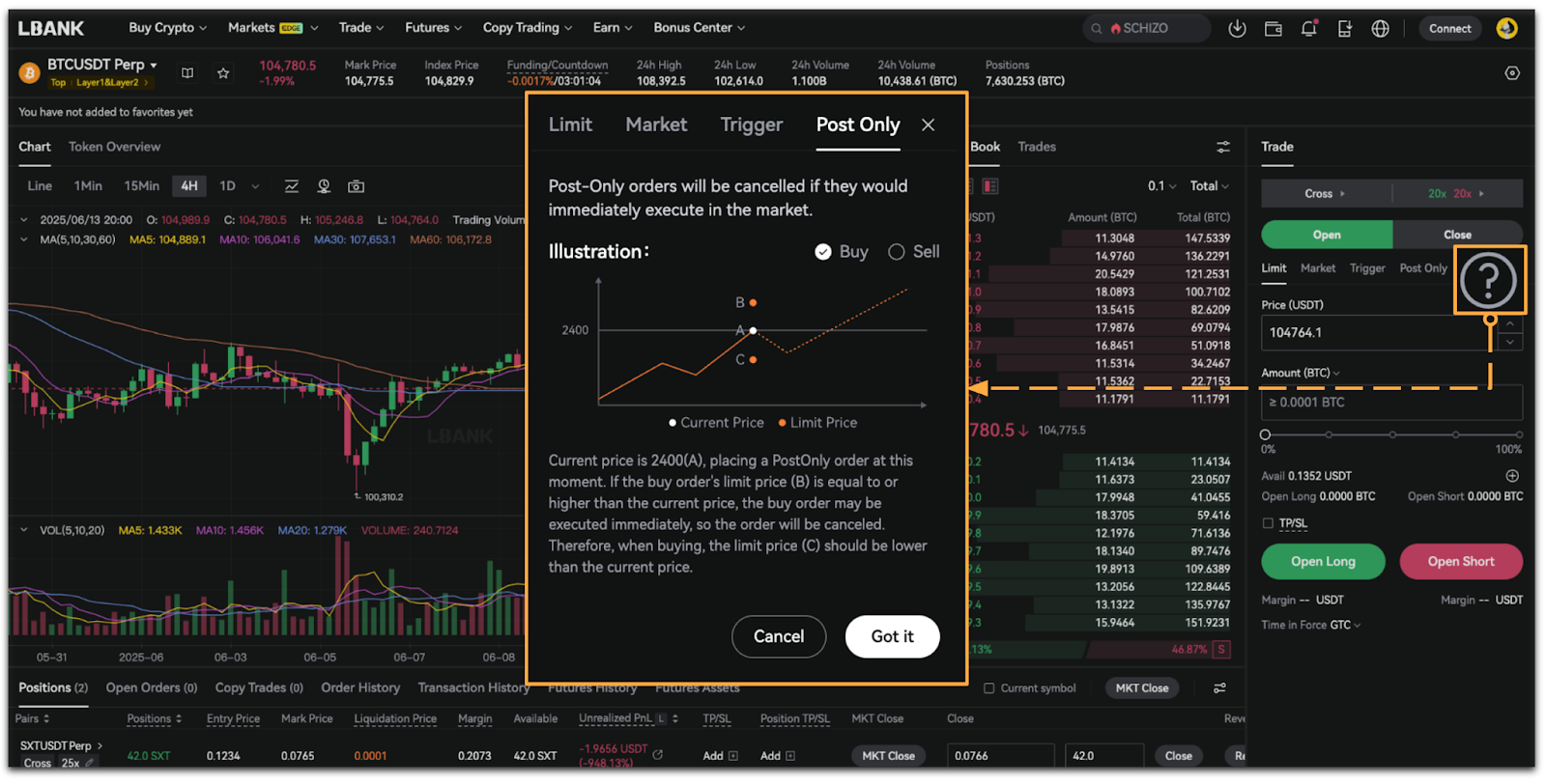 - Tap [More Info] to view more about Post Only Order.