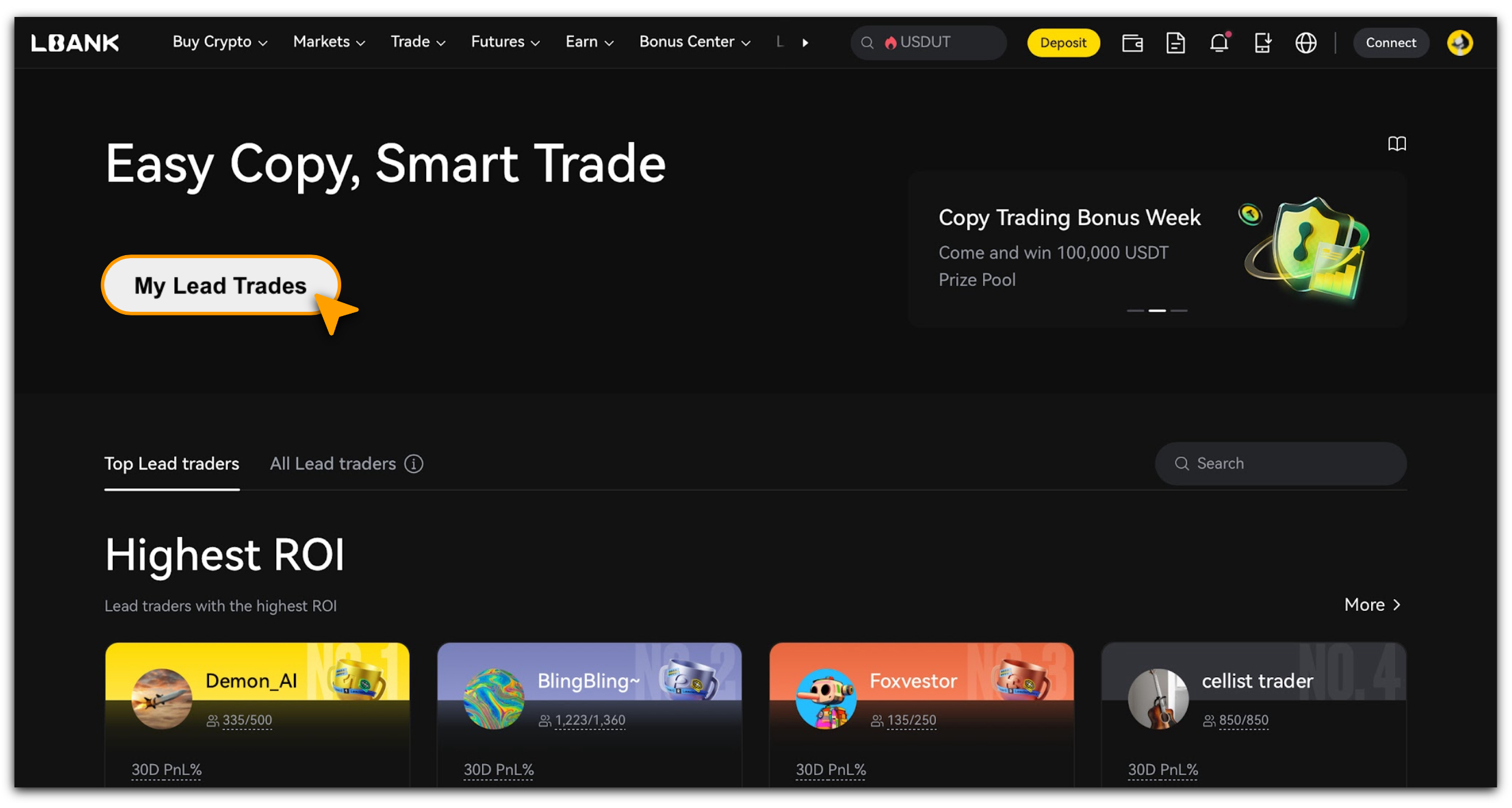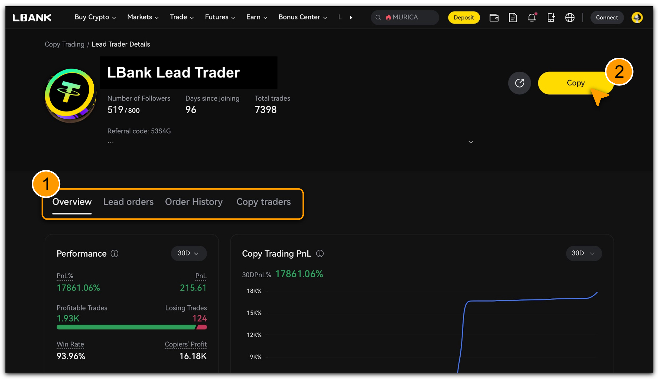 To help you get started with LBank’s copy trading feature, here’s a concise guide: