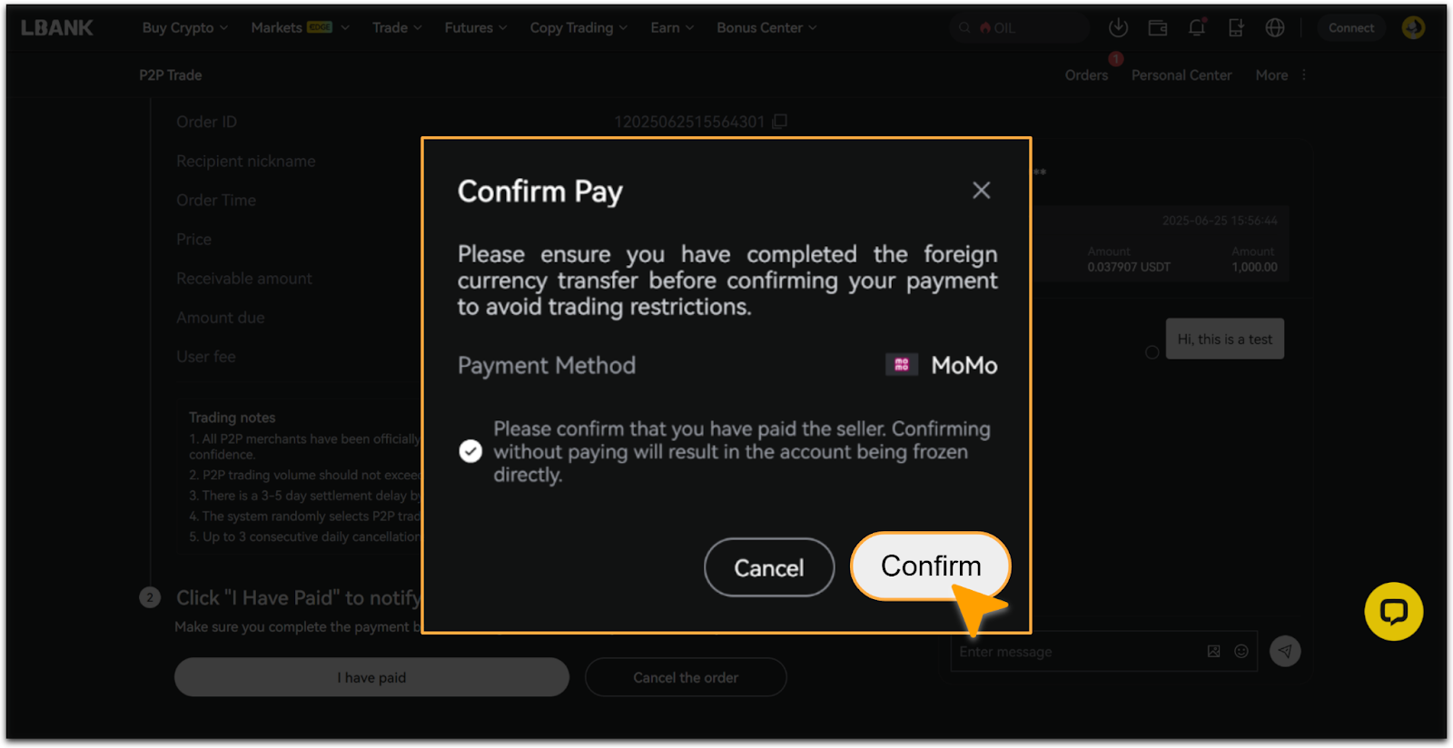 LBank P2P lets users trade crypto directly with local currency. Set your own price, choose a payment method, and enjoy safe, fast transactions with LBank’s escrow service.