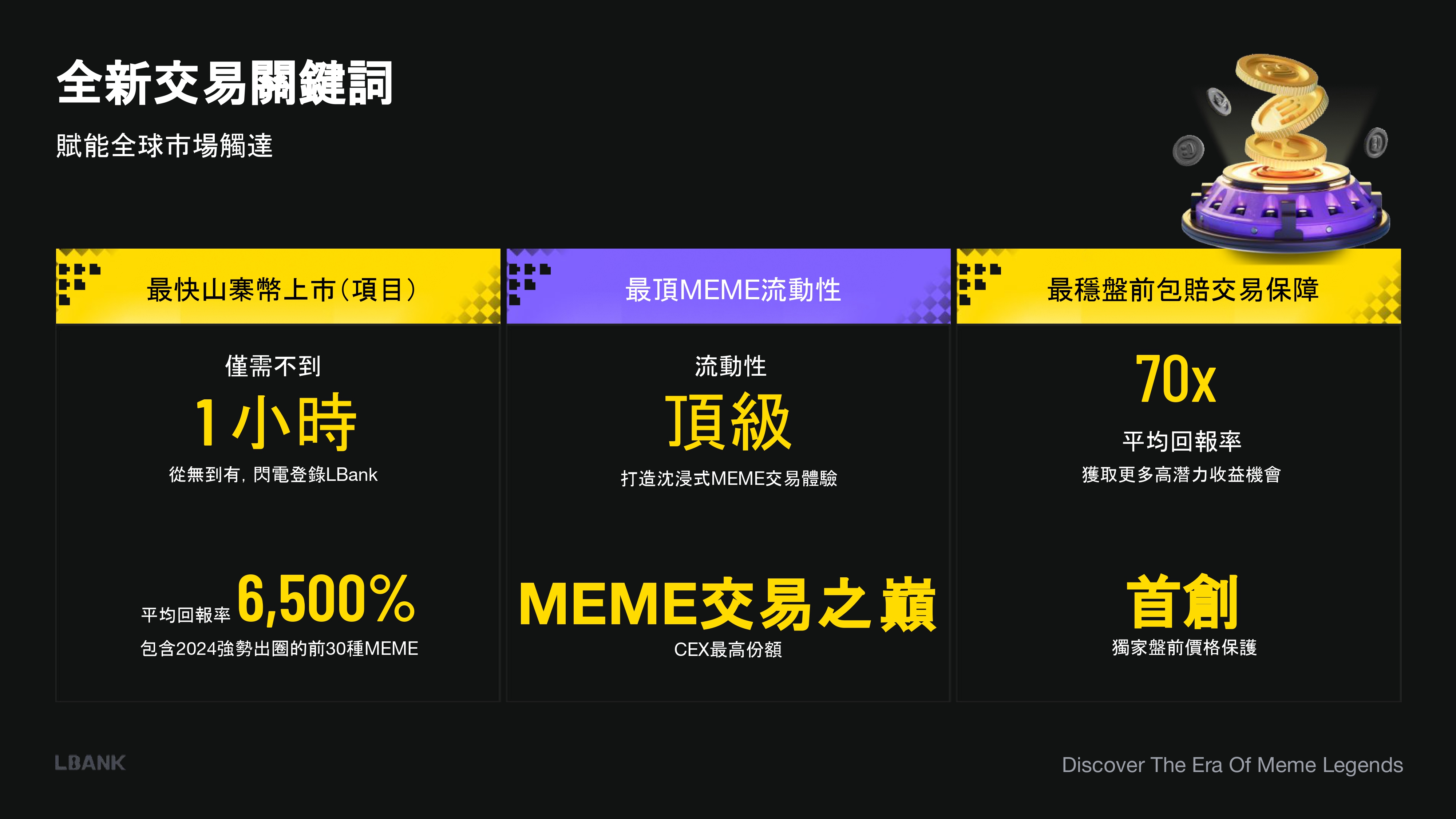 LBank 是一家主打高流動性且迅速上架山寨幣的中心化交易所,適合追求高回報、迷因幣投資和早期項目參與的交易者使用。此外,LBank 提供的介面相當適合新手使用,且平台適用法幣入金,對於新手而言頗為便利。