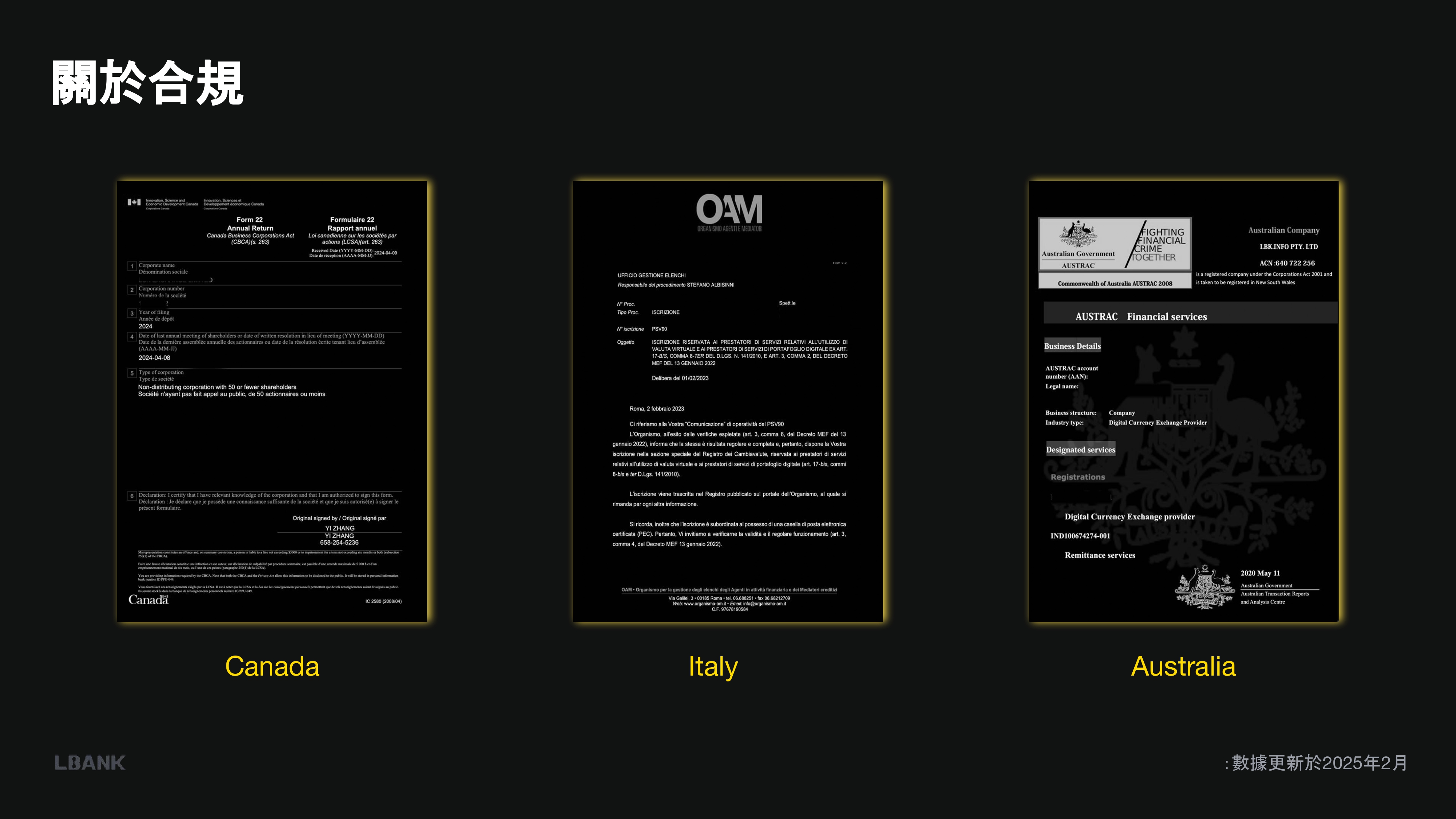 LBank 目前擁有美國 NFA、MSB、加拿大 MSB 等多項合規牌照,在投資者註冊後同樣也會要求用戶進行 KYC 身分驗證以防止詐騙集團利用該平台進行洗錢等不法操作,並與知名合規公司 Elliptic 合作,強化安全性與反洗錢機制。