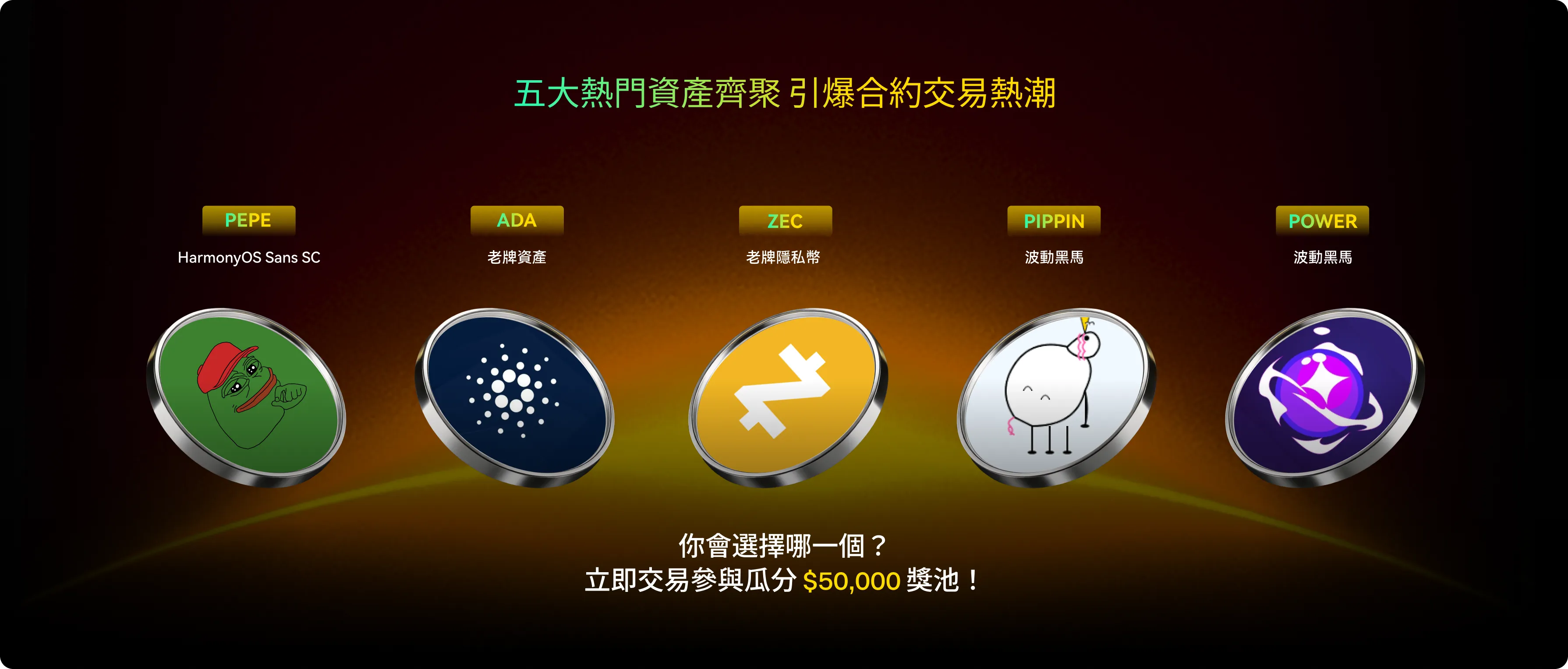 完成指定合約交易量 ≥ 50,000 USDT 的用戶,即可參與瓜分 $10,000 合約體驗金獎池。