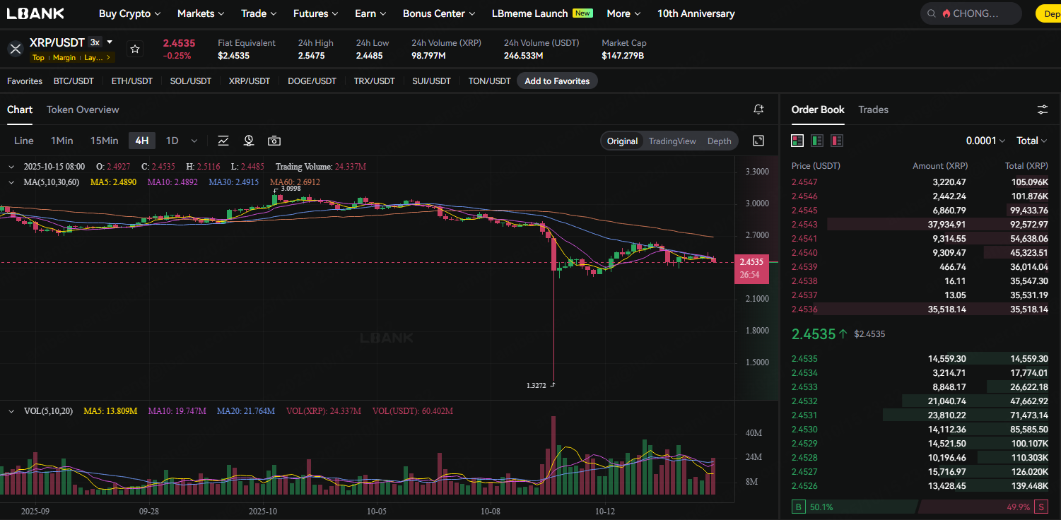 消息一出,比特幣數小時內暴跌 16%,以太坊跌幅超過 21%,XRP 更重挫 53%。多家交易所出現連鎖爆倉,數十億美元槓桿多單被強制平倉。