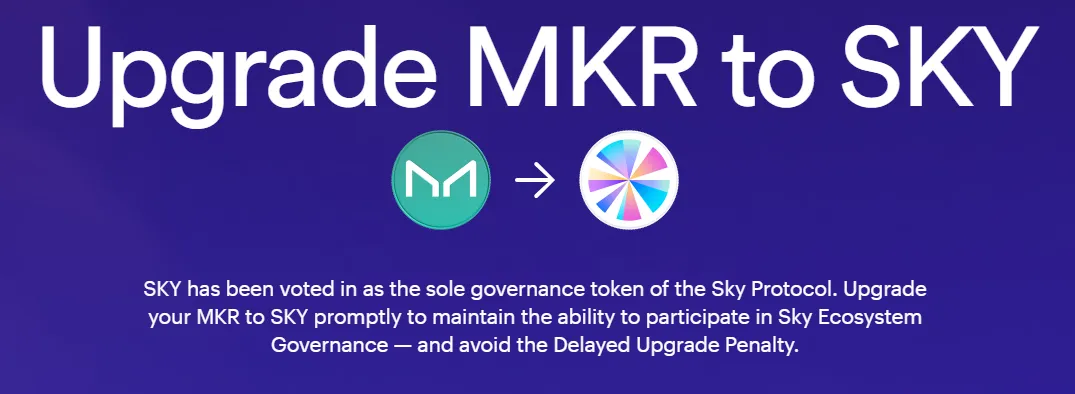 對 MKR 持有者而言,這是最重要的機制。每 1 MKR 可升級為 24,000 SKY。此比例對所有持有者皆一致,且不會因升級時間而改變。