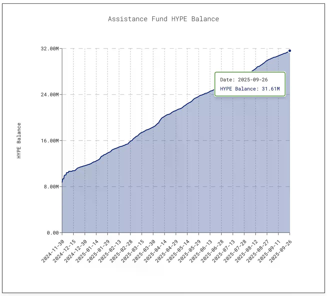 截至本文撰写时,该基金已累计持有超 3161 万枚 HYPE 代币,价值约 14 亿美元 —— 较 2025 年 1 月的 300 万枚增长了 10 倍。
