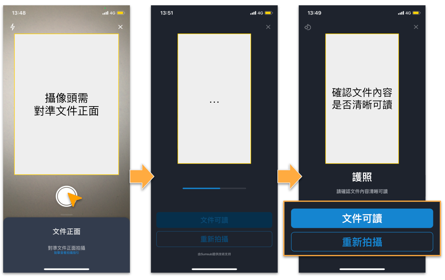 點擊【文件可讀】,讓系統驗證結果。如果文件不可讀,您將被返回到提交頁面,重新拍攝。或者,如果您發現拍攝的照片存在任何清晰度方面的問題,可選擇【重新拍攝】。