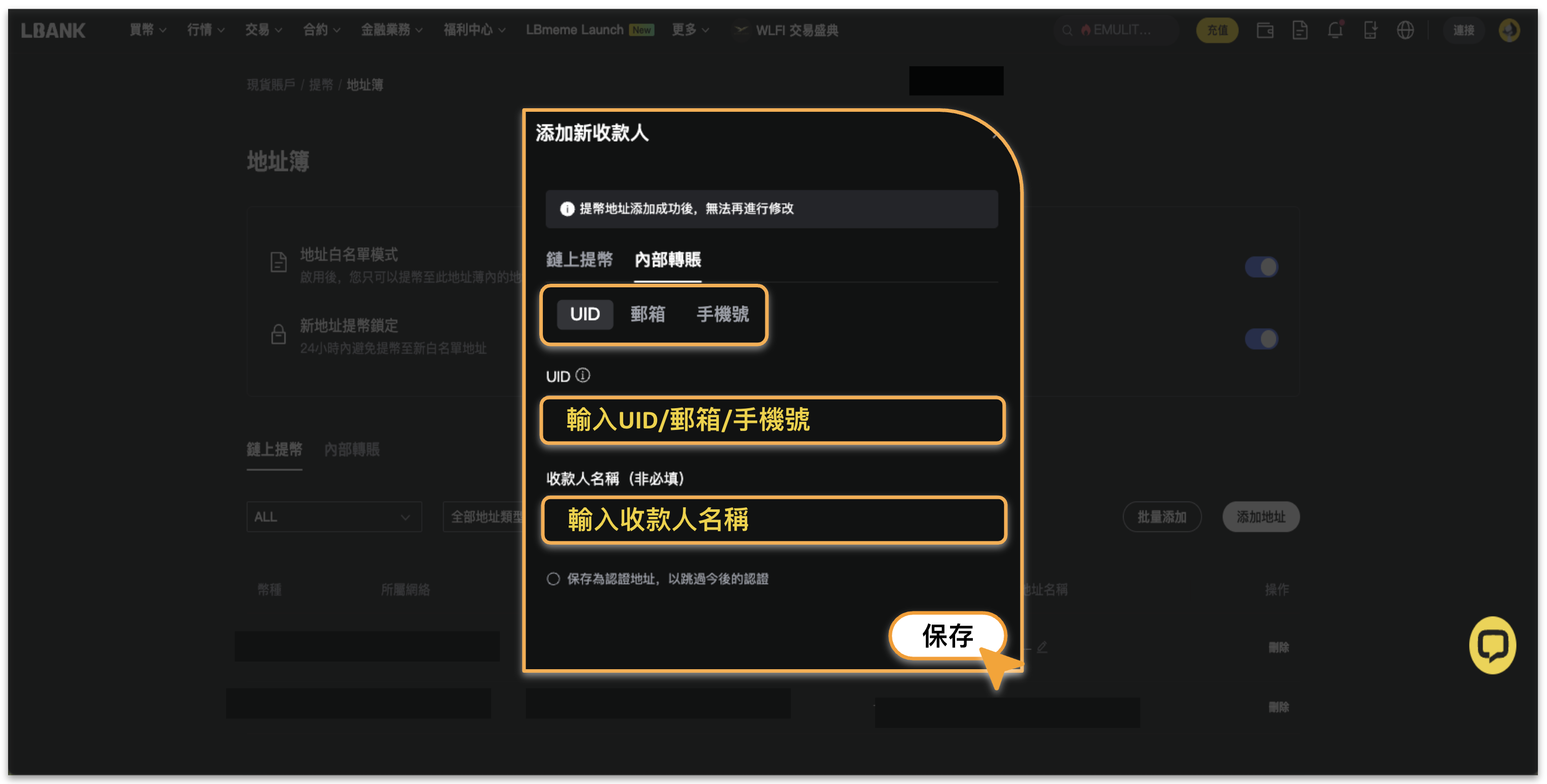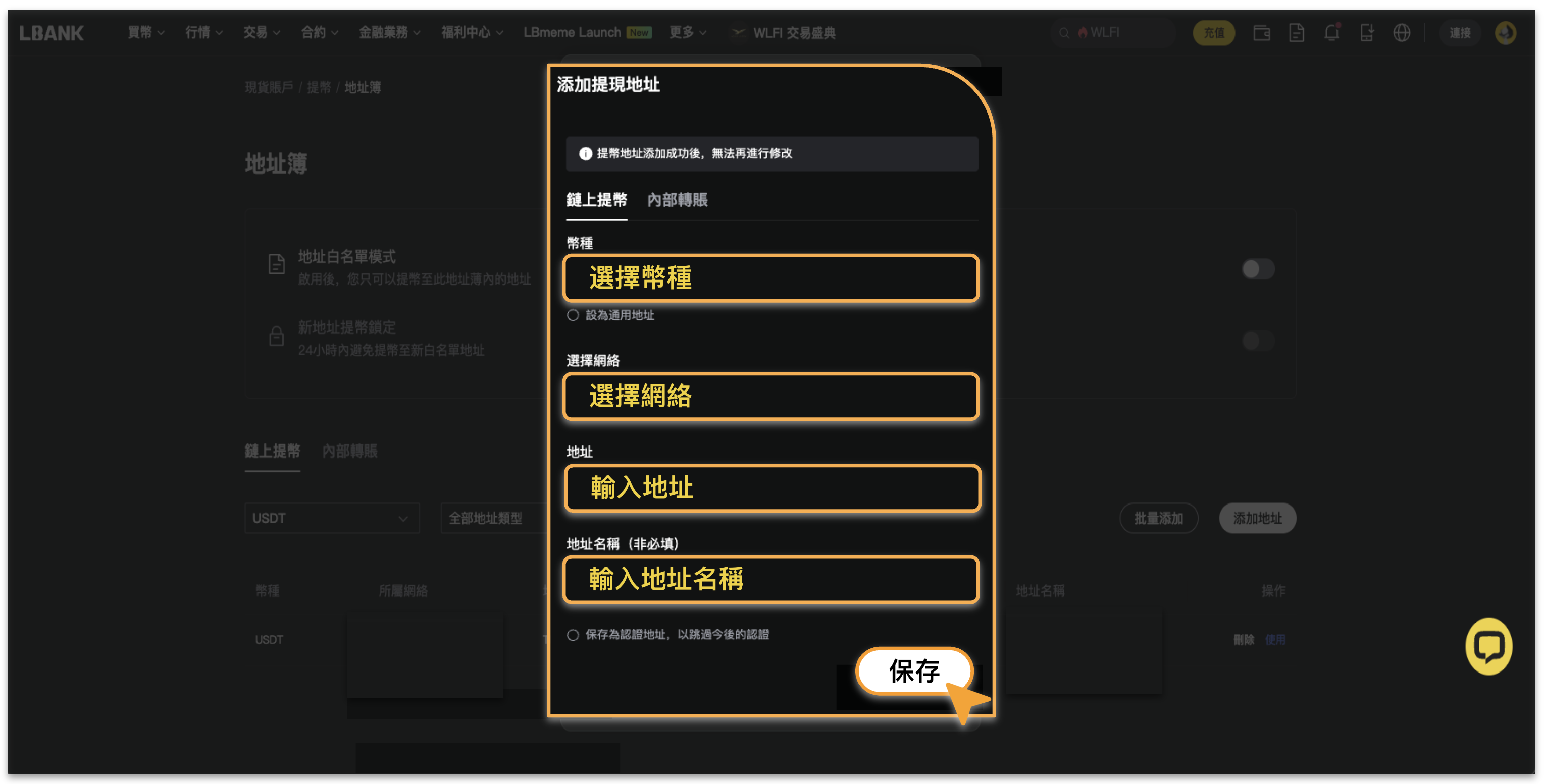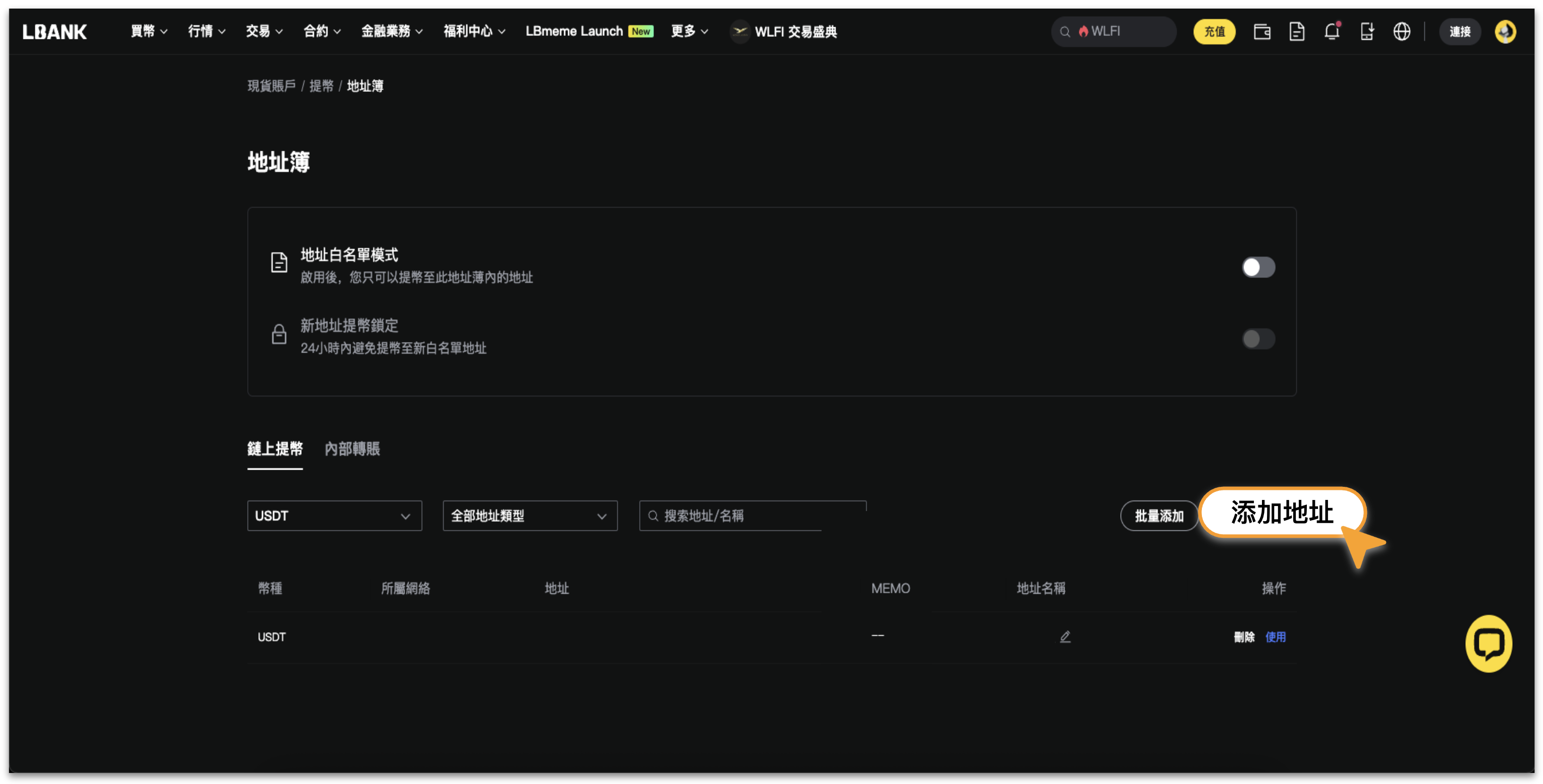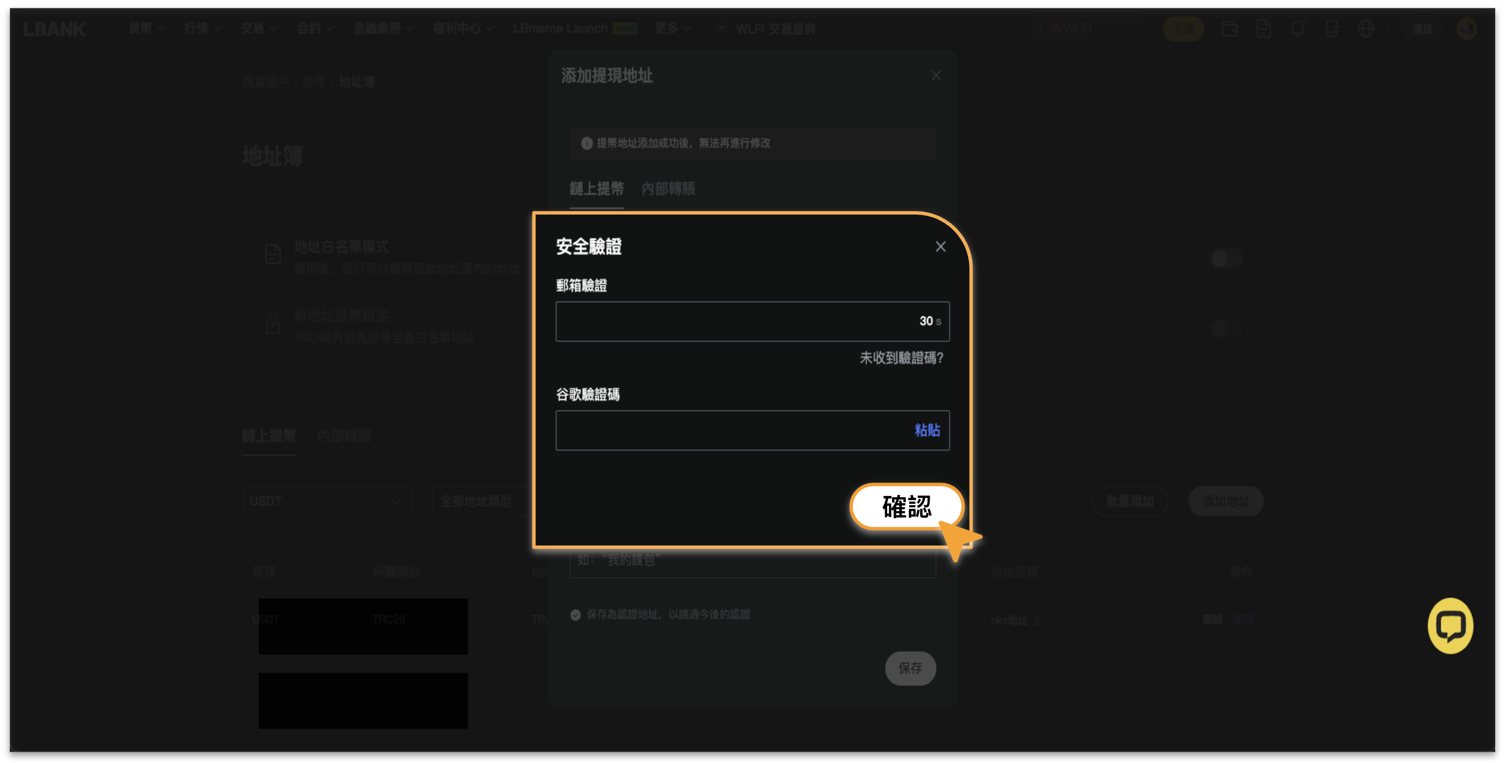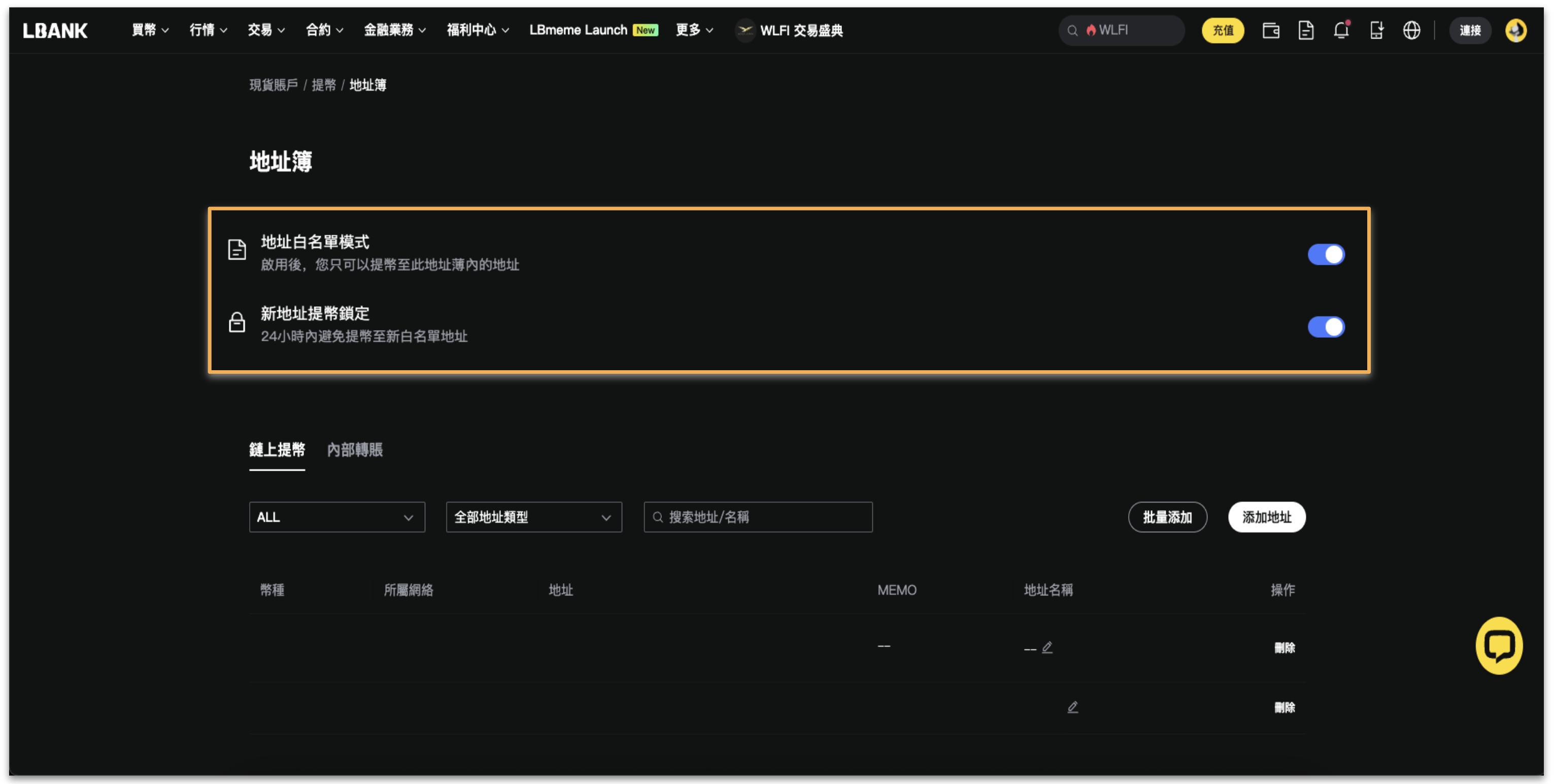 新地址提幣鎖定:勾選【新地址提幣鎖定】後,新增地址在24小時內將無法提幣。