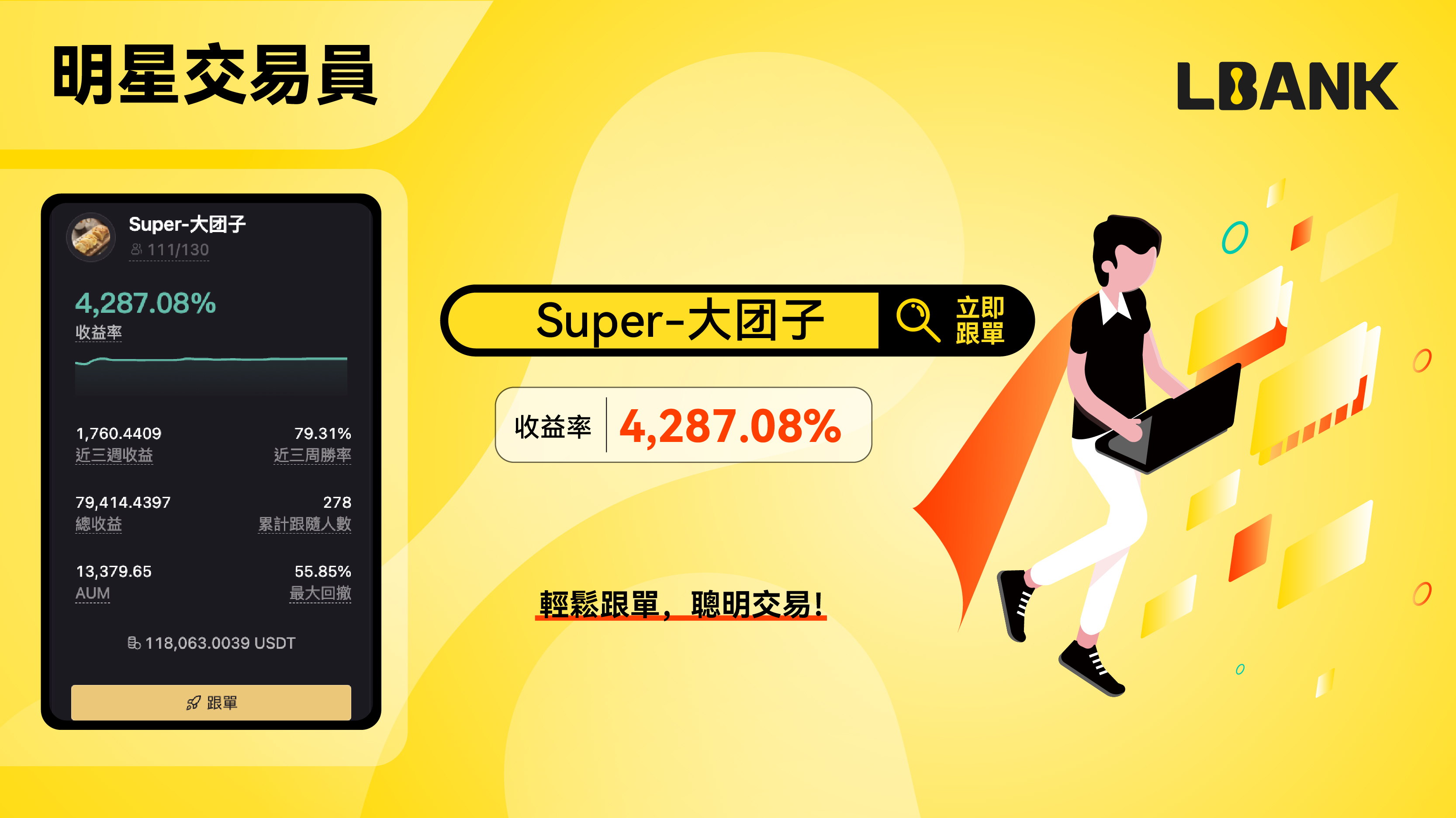 3.1 本周明星交易員: “Super-大团子”以 4,287.08%的收益率成為本周明星交易員,輕鬆跟單,聰明交易,快來開始你的跟單之旅吧!