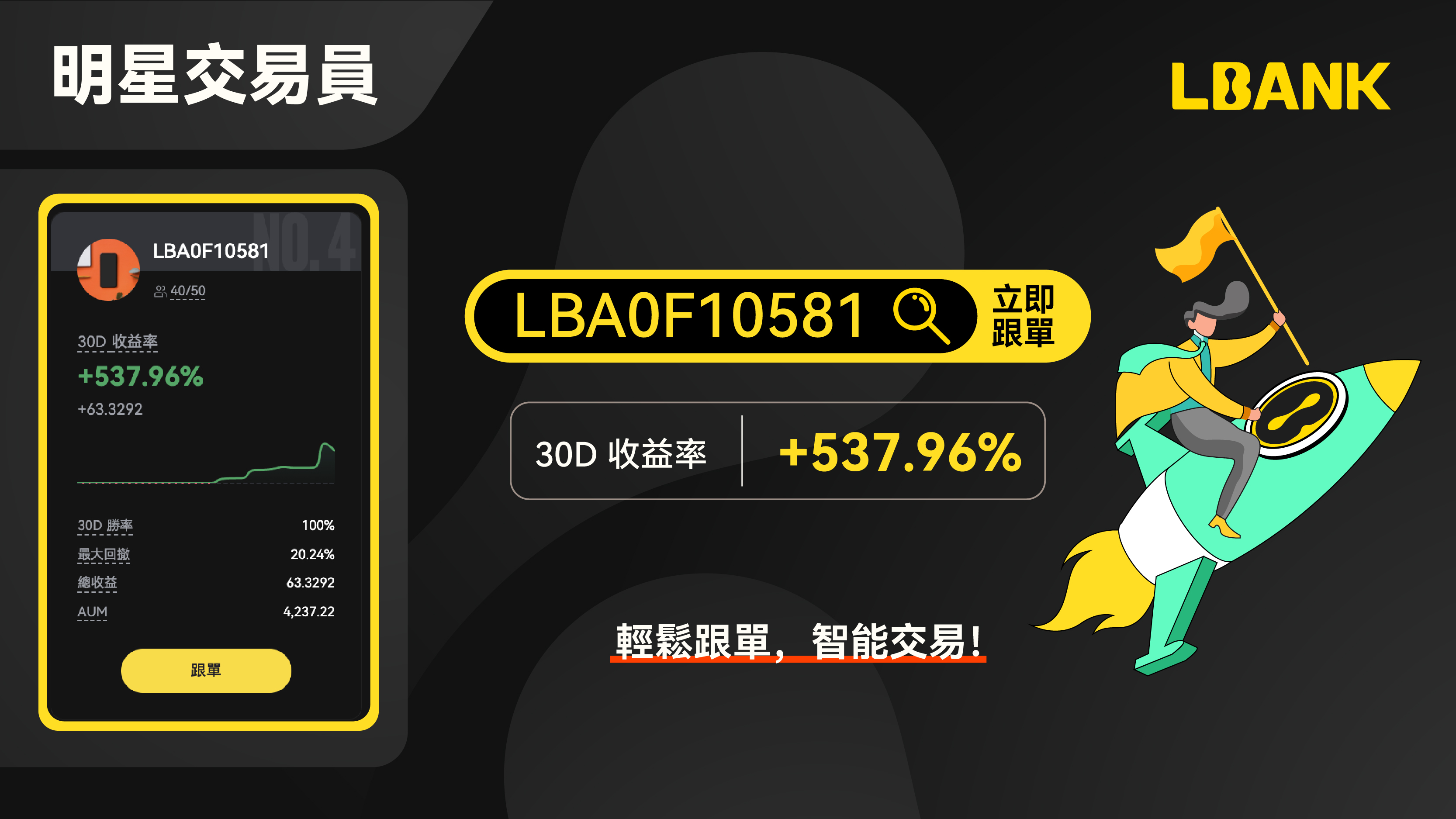 3.1 本周明星交易員:LBA0F10581以30D收益率 537.96%成為本周明星交易員,輕鬆跟單,智能交易,快來開始你的跟單之旅吧!