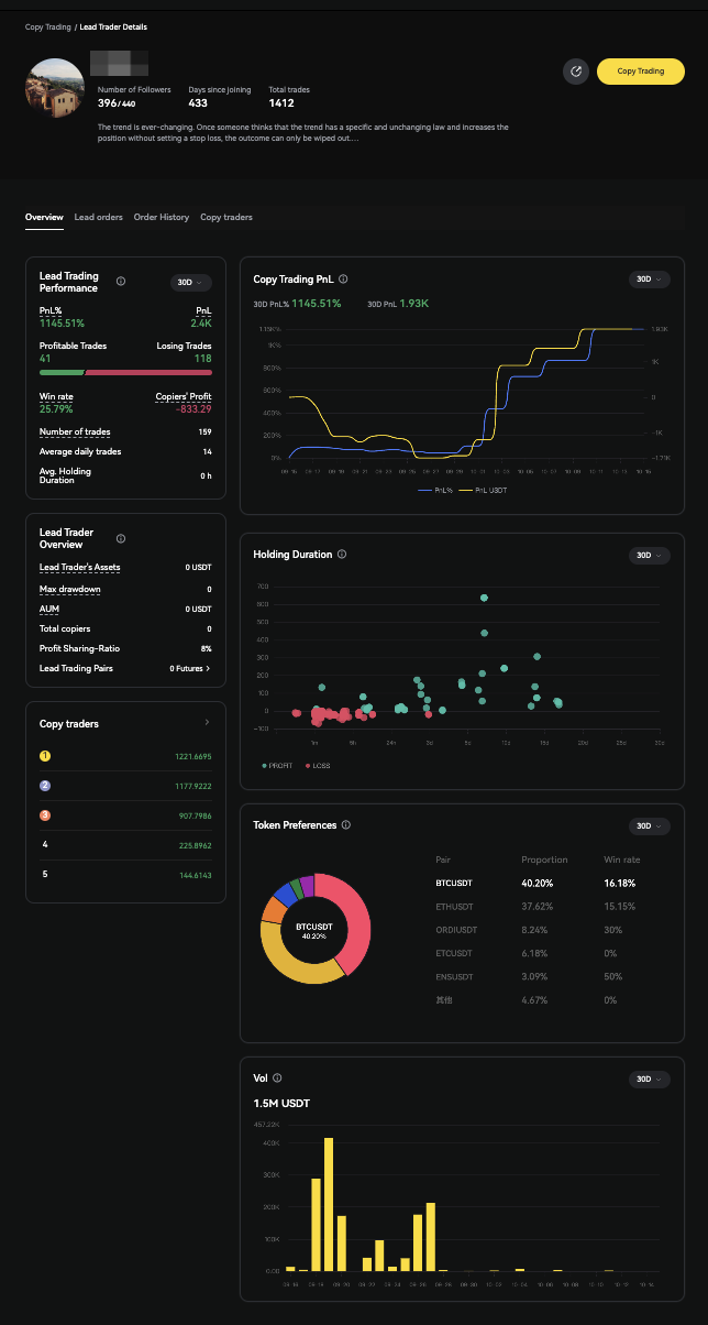 - 突出帶單員帶單數據表現,并優化帶單員圖表,便于跟隨者查看對比。