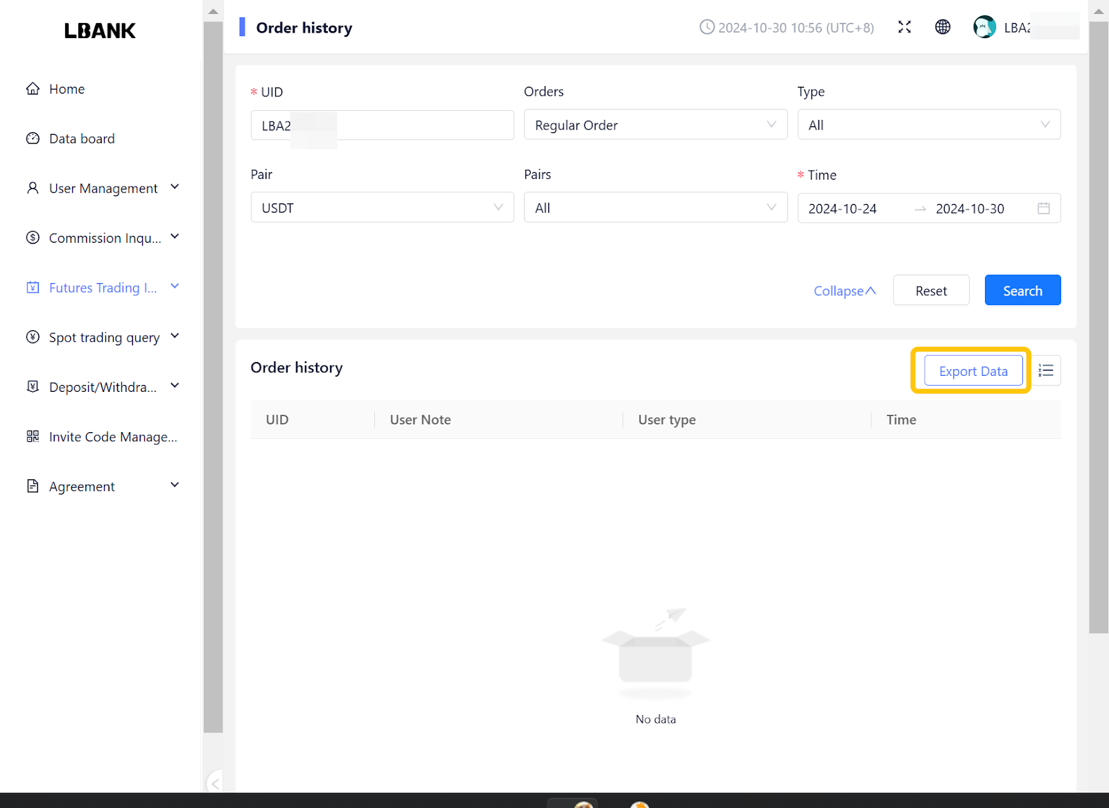 - Affilate系統,合約交易查詢-歷史委託 增加數據導出功能
