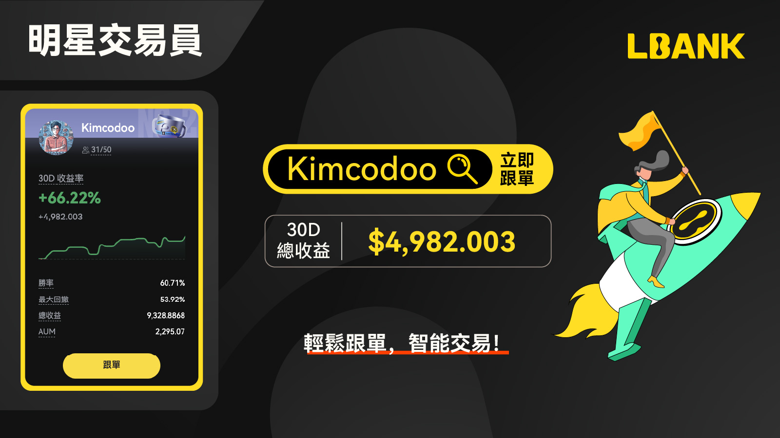 3.1 本周明星交易員:Kimcodoo 以30D 總收益 $4,982.003成為本周明星交易員,輕鬆跟單,智能交易,快來開始你的跟單之旅吧!