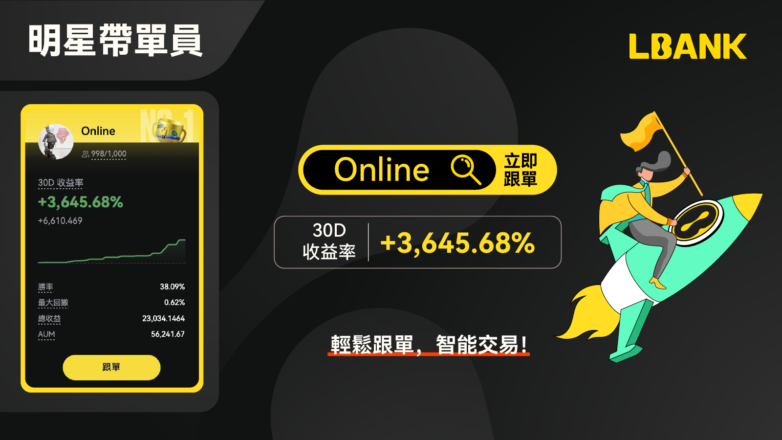 2.1 本周明星交易員:Online以30D收益率 3,645.68%成為本周明星交易員,輕鬆跟單,智能交易,快來開始你的跟單之旅吧!