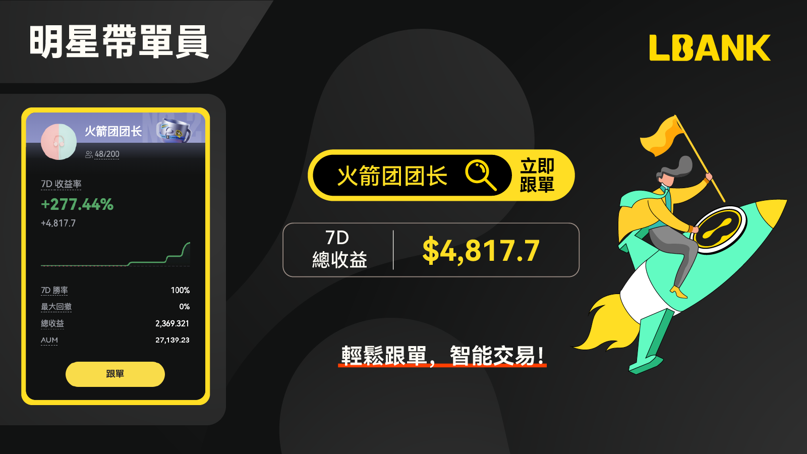1.1 本周明星交易員:火箭团团长以7D 總收益 $4,817.7成為本周明星交易員,輕鬆跟單,智能交易,快來開始你的跟單之旅吧!