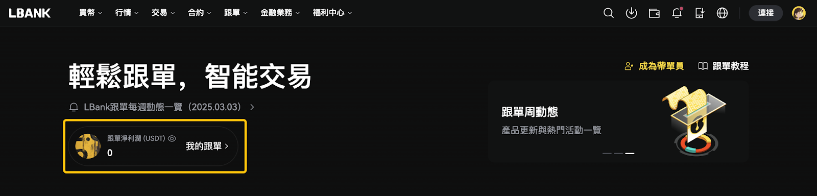 - 跟單首頁「我的跟單」入口顯示用戶頭像,默認顯示跟單收益。