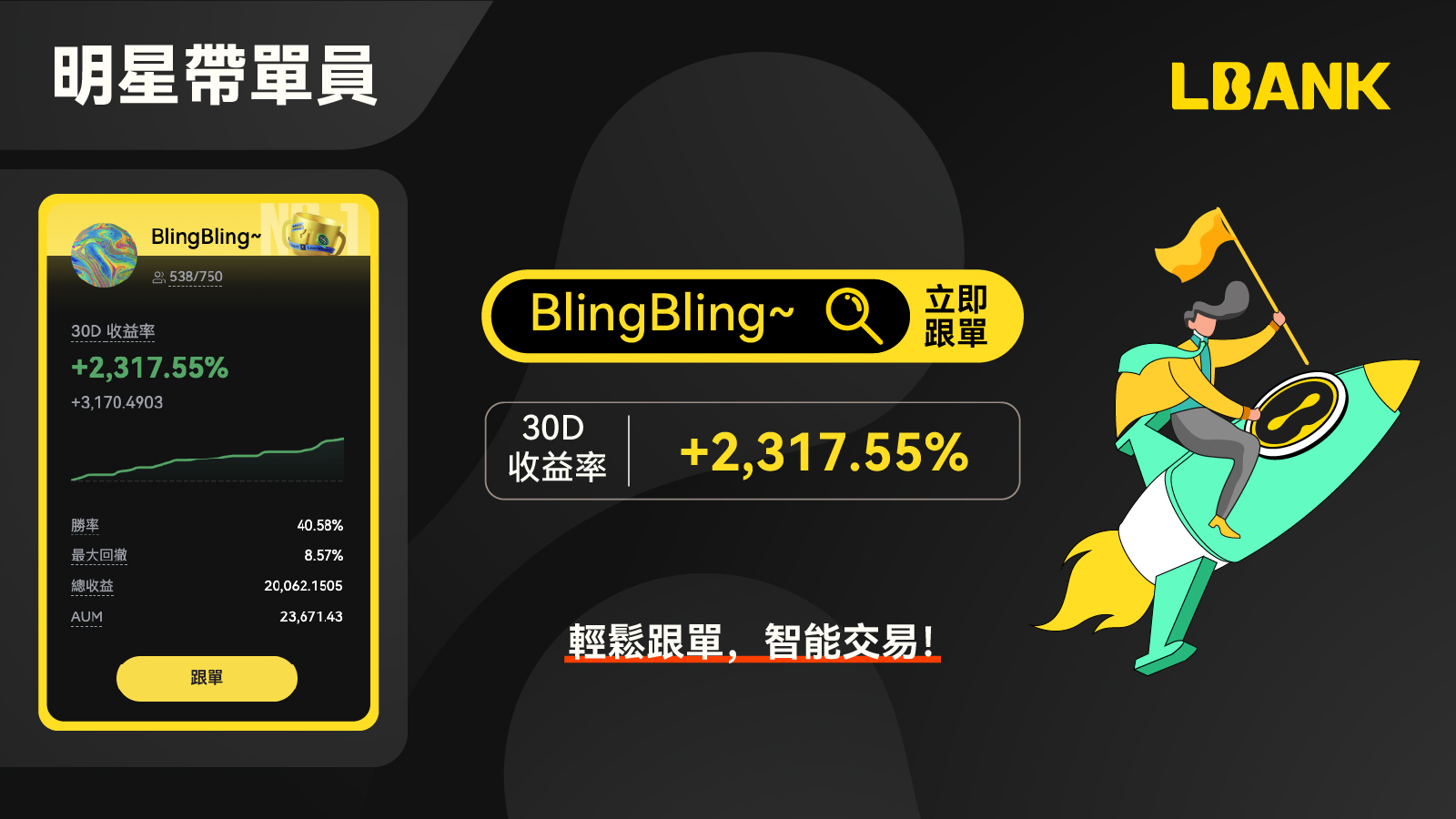 3.1 本周明星交易員:BlingBling~以30D 收益率 2,317.55%成為本周明星交易員,輕鬆跟單,智能交易,快來開始你的跟單之旅吧!