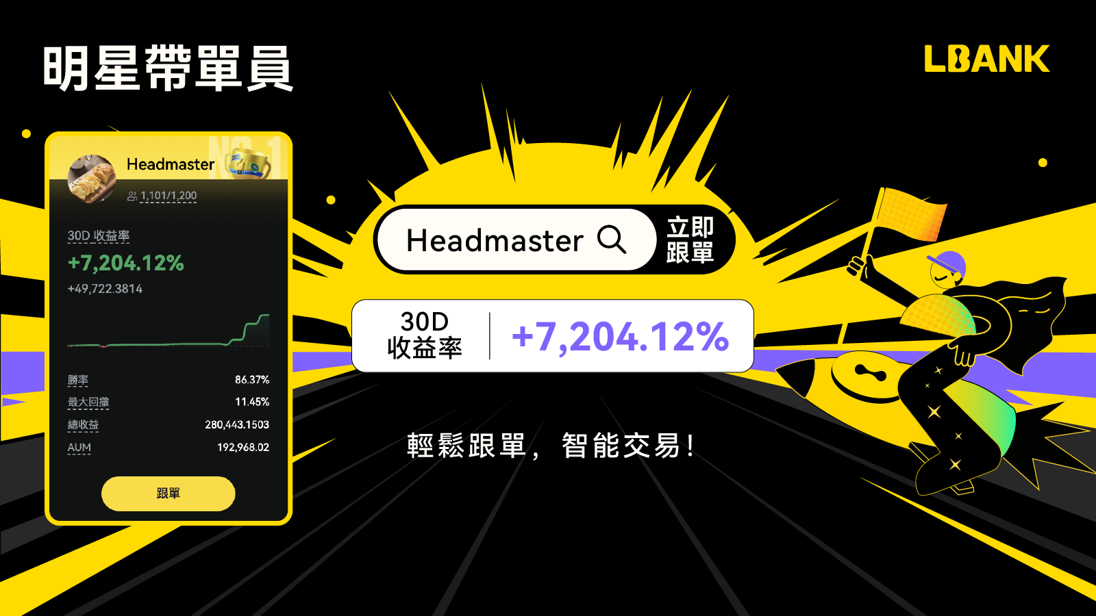 1.1 本周明星帶單員:Headmaster以30D 收益率 +7,204.12%成為本周明星帶單員,輕鬆跟單,智能交易,快來開始你的跟單之旅吧!